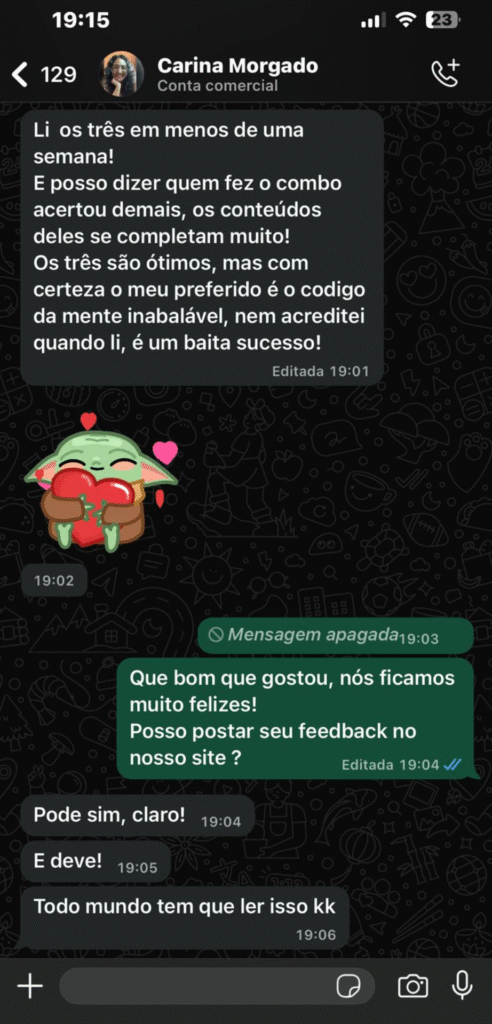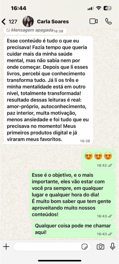 Com nossos e-books, muitas pessoas passaram a se valorizar, recuperaram a autoestima e aprenderam a viver relações mais leves e verdadeiras.
