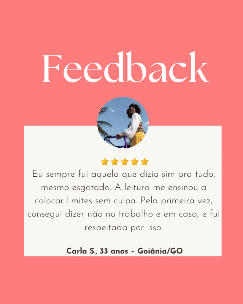É uma leitura leve e feita para reconstruir sua força emocional e te colocar de volta no centro da sua vida.